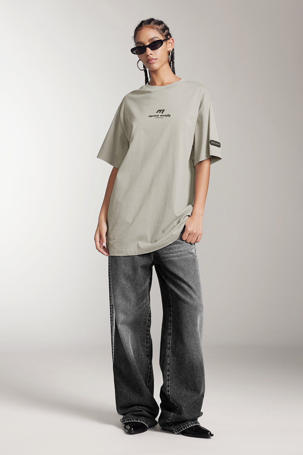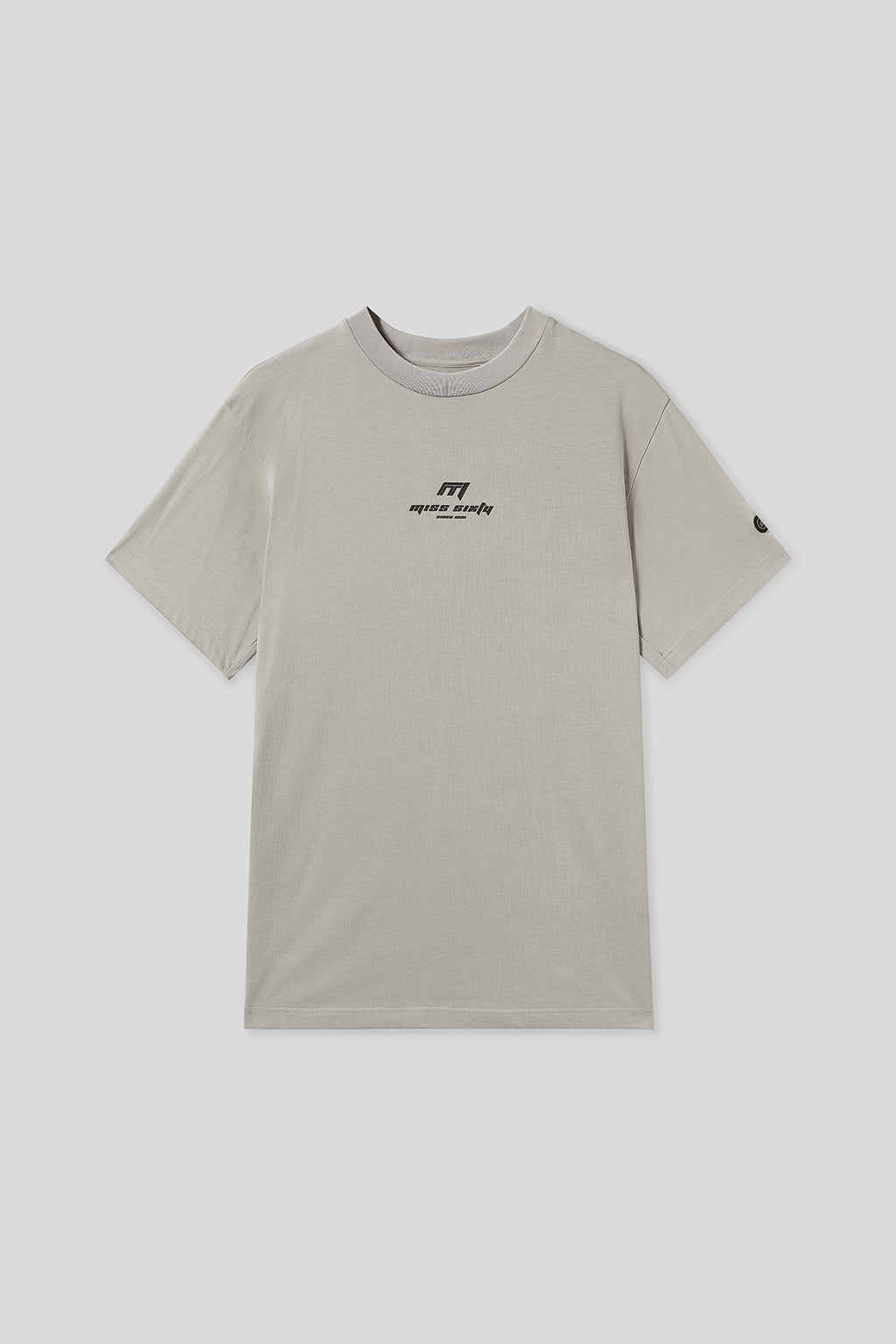 Crafted from selected pure cotton plain knit fabric, the surface is smooth and firm, providing a structured look. The reverse side of the knit fabric is brushed for a fuzzy texture, offering a soft touch and excellent skin-friendly comfort. The round neck design is accented with ribbed trim, providing a comfortable and stretchy fit. The back neckline features English lettering with a contrasting color effect, effortlessly showcasing a unique style. The silicone patch with racing-inspired elements instantly enhances the overall appeal.