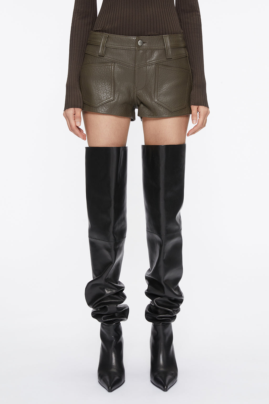 Selected cotton denim, made from Turkish cotton with long, glossy fibers, results in a fabric that is more skin-friendly and comfortable. The denim features a rugged texture with prominent slub yarns in both the warp and weft. Through various washing and processing techniques—such as enzyme washing, hand sanding, and snowflake washing—each piece offers a unique fashionable look, embodying the texture and charm of vintage denim. The low-rise design is making a vintage comeback, highlighting sensual waist and hip curves and reviving the fashion trends of the early 2000s. The black label with a contrasting logo pattern presents a natural crinkle effect, adding a trendy and eye-catching element. The back pockets extend outward, creating a stylish silhouette and showcasing the free-spirited nature of denim.