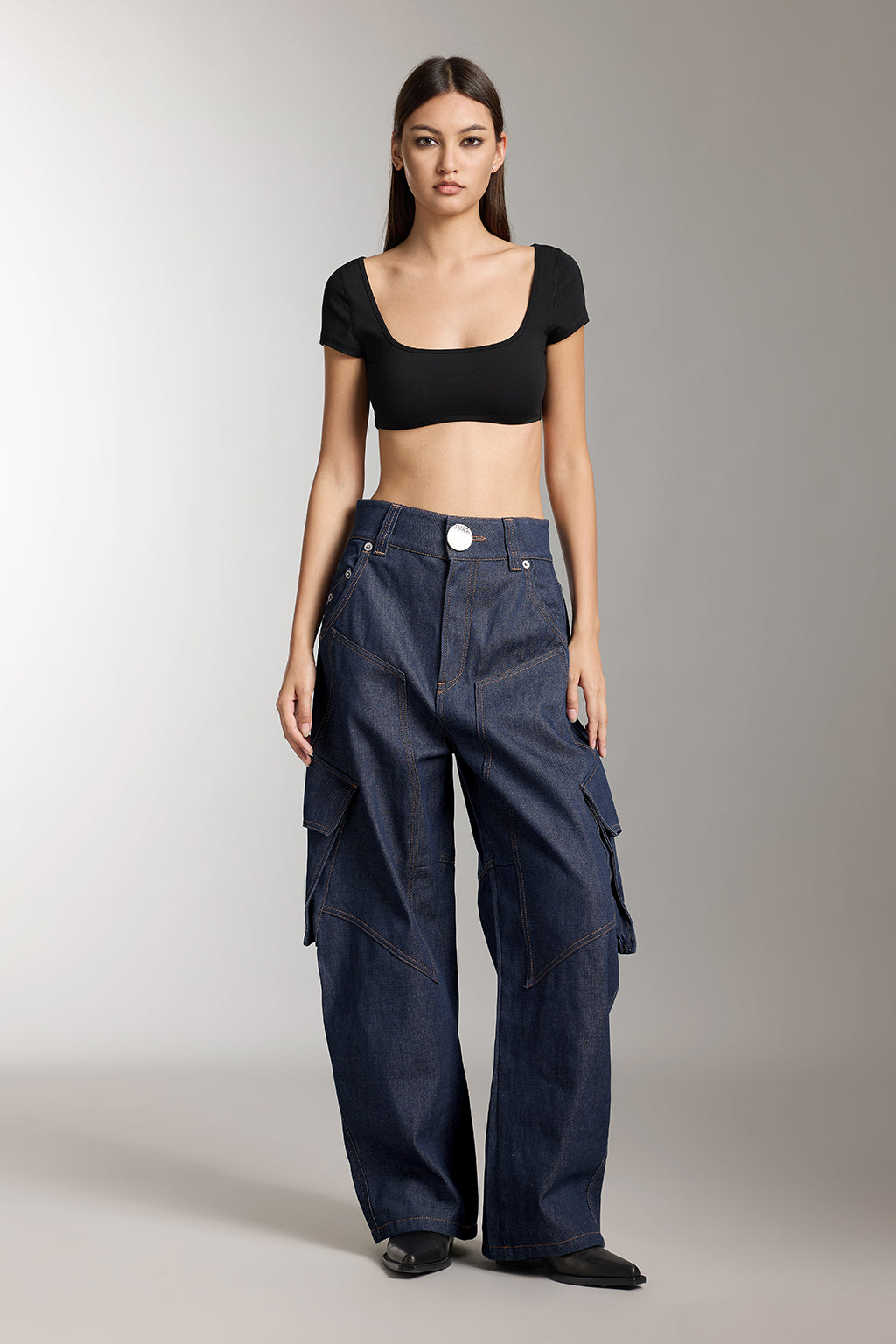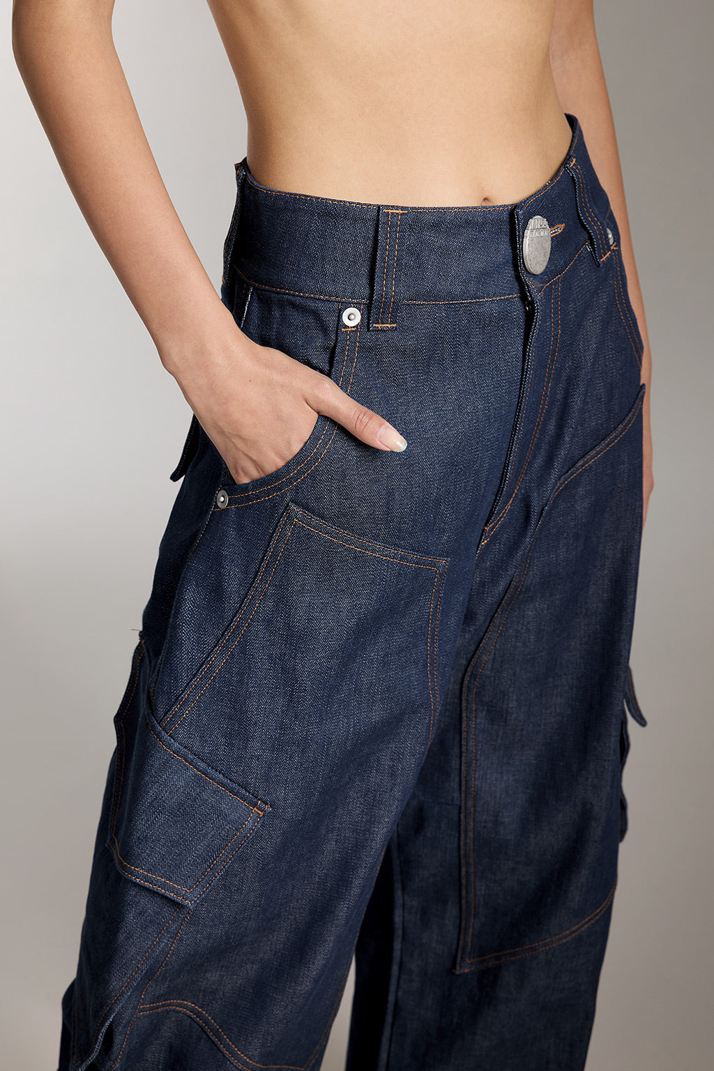 Crafted from premium denim with an opulent texture, this fabric features high-quality cotton from its origin and is woven with precision on top-notch machinery. The denim boasts a strong grain and distinct slub effect, showcasing a bold and individualistic style. Its lustrous finish, softness, and structured feel provide exceptional comfort and a superior wearing experience. The low-rise cut introduces an American retro touch, while the upgraded industrial-style button adds a standout cool factor. The back flap pocket design adds depth and subtly enhances the rear profile. The relaxed tapered shaped pants offer a simple, casual look with a modern flair.