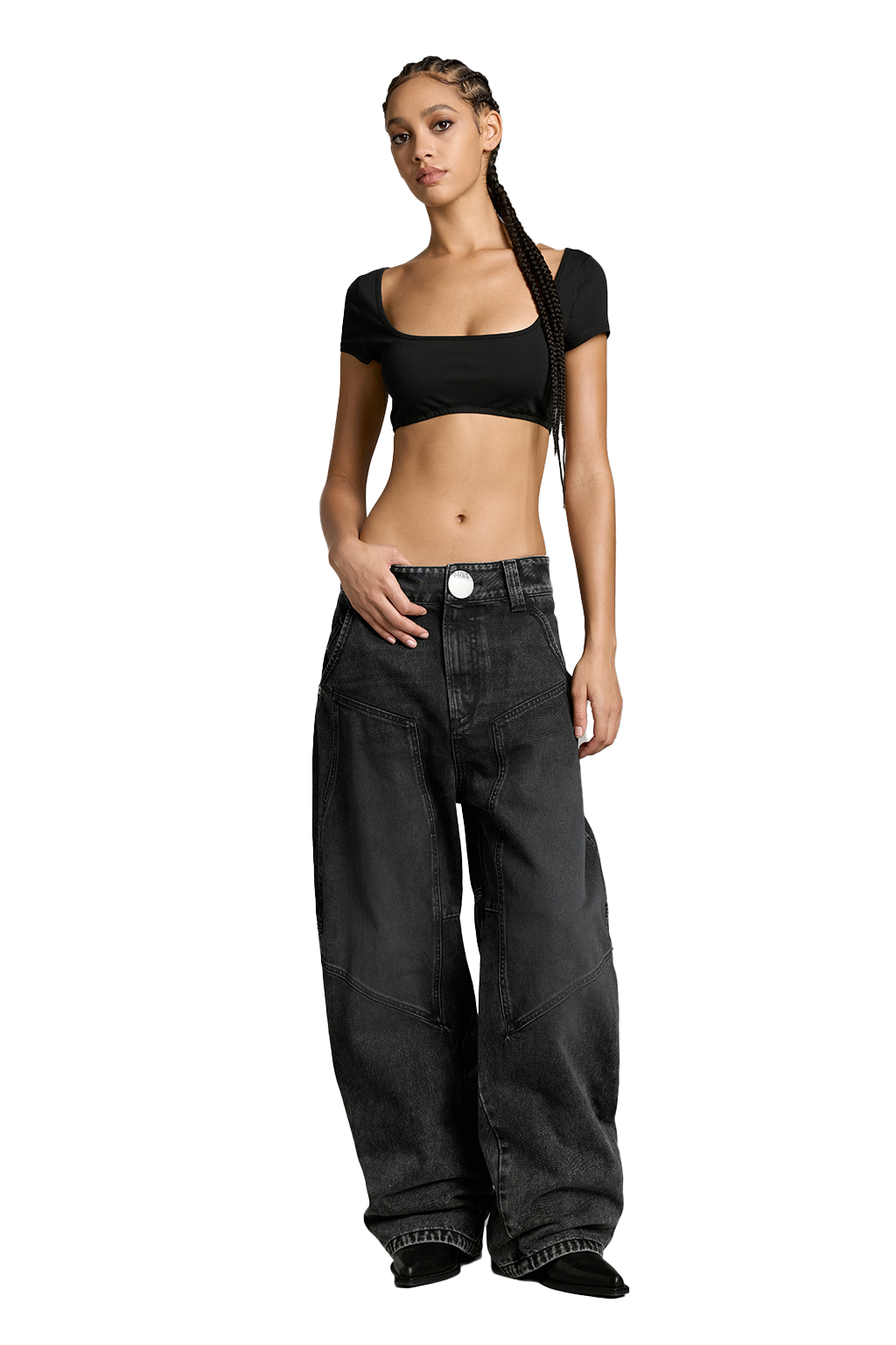 - Loose wide-leg fit